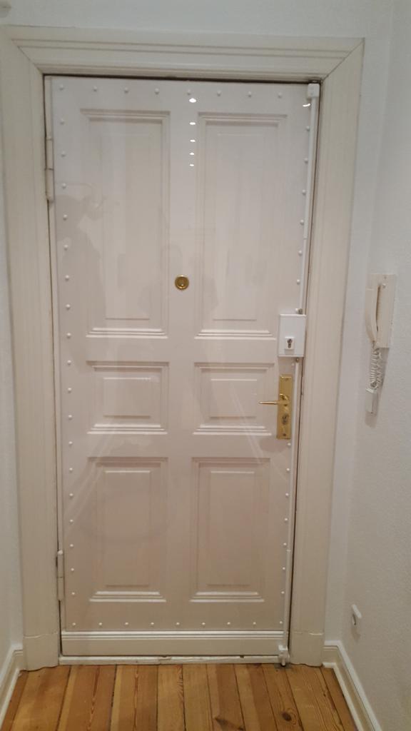 Bei einer Altbautür sind die Möglichkeiten beschränkt. Jedoch kann mit einem Stangenschloss die Tür oder Doppelflügeltür eine Türsicherung gegeben werden um ein aufhebeln der Tür zu vermeiden. Zusätzlich kann man die Tür durch entsprechende Platten stärken.